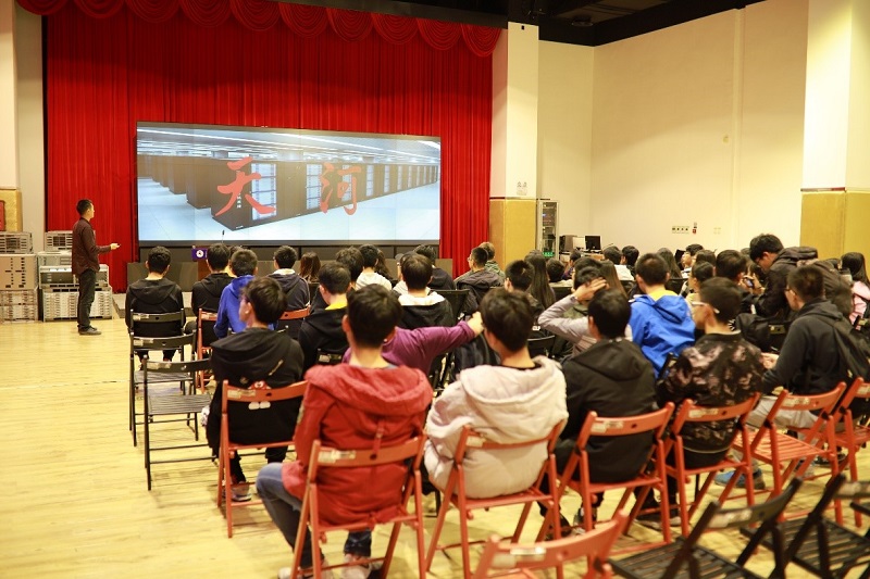 在超算中心工作的05届天大校友夏梓峻接待了自动化院学生一行人,并对天大学弟学妹前来参观表示了热烈欢迎,在会议室中夏梓峻校友详细讲解了超算中心的职责——主要承接国家"863"重大科技专项,定位为国家重大科技服务平台、产业技术创新平台、人才聚集培养平台。在互动环节中,夏梓峻校友回答了“天河一号”计算机到底是什么、对我们国家做出什么贡献等众多问题,以学生能接受的方式,引导学生了解专业知识和实际应用之间的联系和区别。