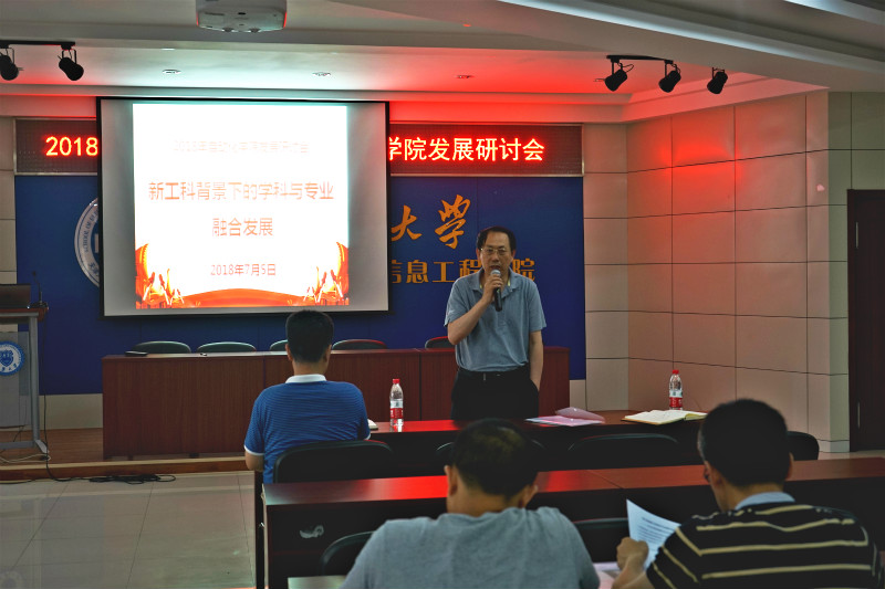 召开主题为“新工科背景下的学科与专业融合发展”的研讨会。学院领导班子成员、院长助理、教代会、工会负责人、全体教授、各系(中心)主任副主任、各党支部书记副书记参加了此次大会,大会由党委书记李继平主持,教务处处长巩金龙应邀作主题报告。