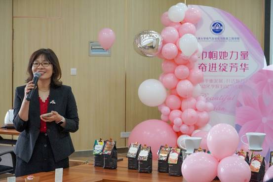 本次活动由学院副院长、工会主席解晶主持。解晶表示近五年学院发展势头良好,离不开女教职员工在其中发挥的中坚力量作用,学校女教师在科研获奖、教学成果、荣誉称号上取得了“国家技术发明二等奖”、“全国教学创新大赛一等奖”、“天津市三八红旗手”等一系列荣誉。本次活动旨在让女老师们在职业成就和个人经验的分享交流中,增进彼此之间的了解和友谊,进一步激发创新、实干、奋斗的热情。