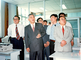 1997年荣智健来校访问,参观荣智健计算机实验室